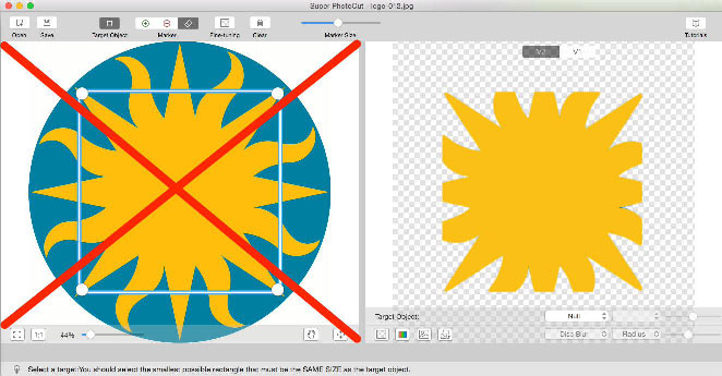 To create a rectangle box around the portion that you want to cut out of an image, click Target object on the toolbar. Target object is used to quickly select the items you want to keep.